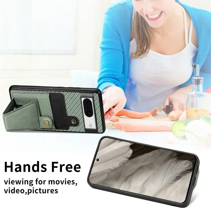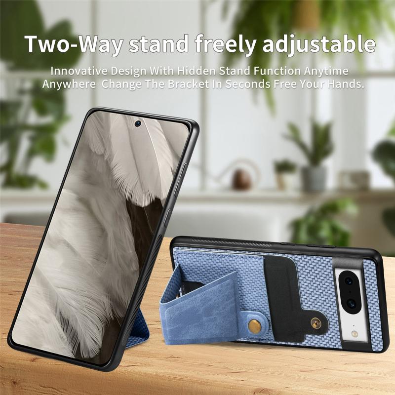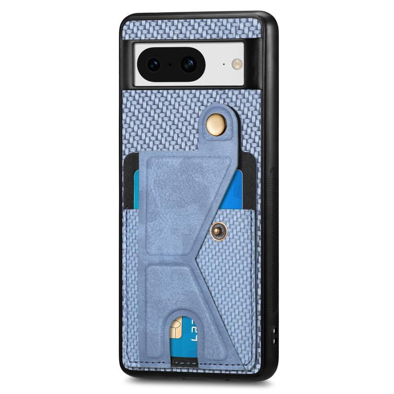 For Google Pixel 8 Carbon Fiber Wallet Flip Card K-shaped Holder Phone Case(Blue)