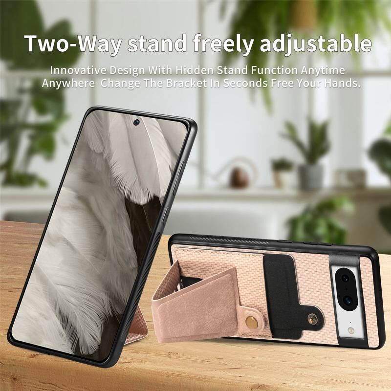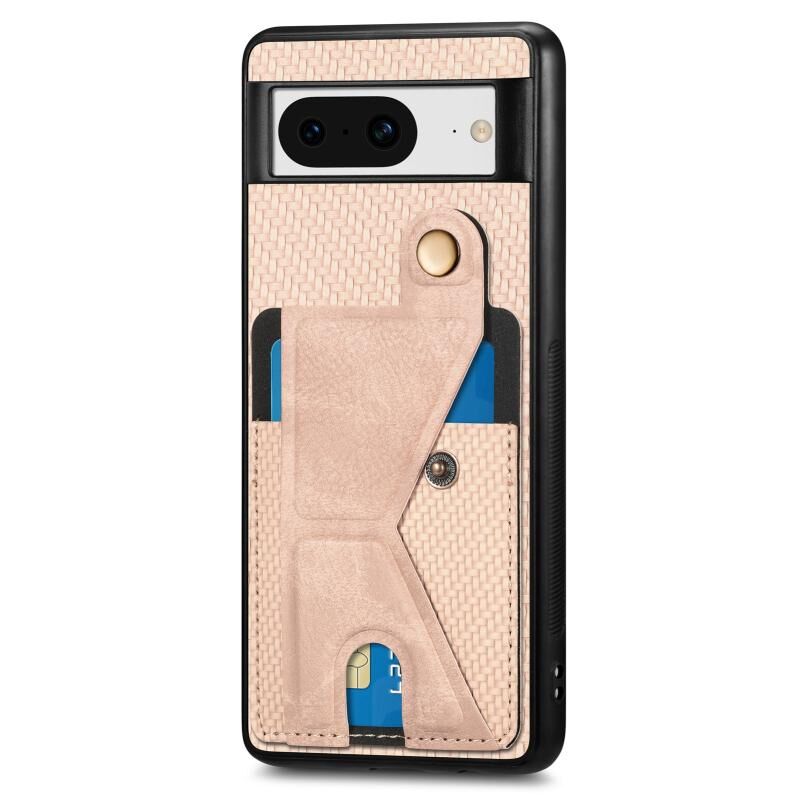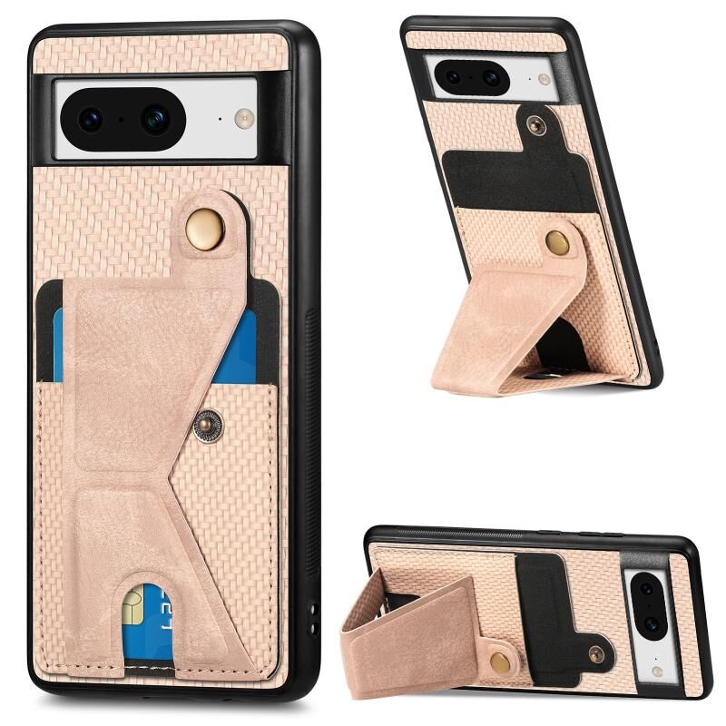 For Google Pixel 8 Carbon Fiber Wallet Flip Card K-shaped Holder Phone Case(Khaki)
