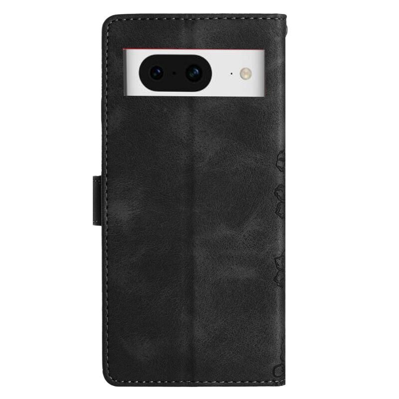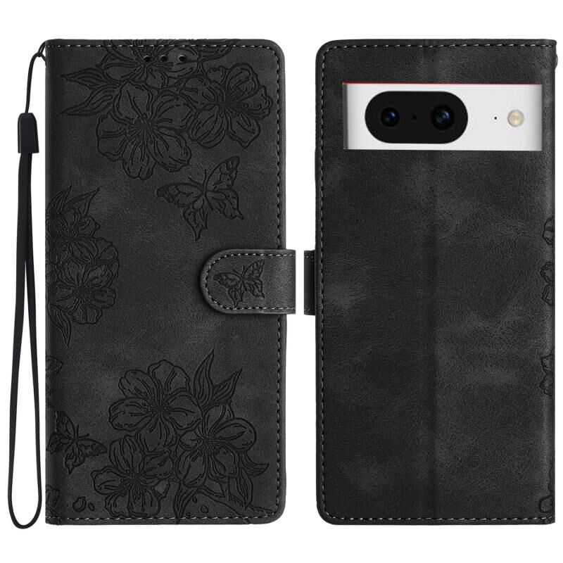 For Google Pixel 8 Cherry Blossom Butterfly Skin Feel Embossed PU Phone Case(Black)