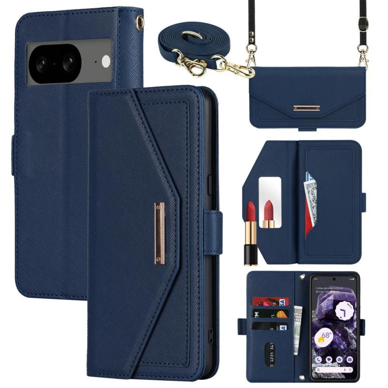 For Google Pixel 8 Cross Texture Crossbody Lanyard Leather Phone Case(Blue)