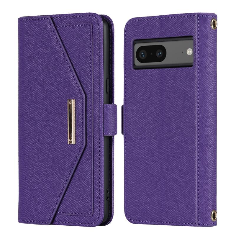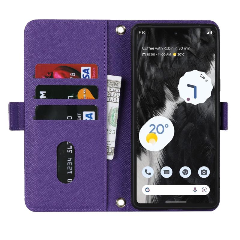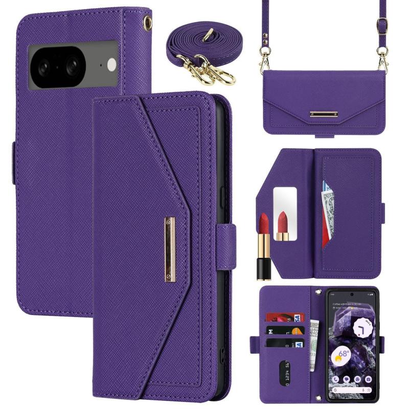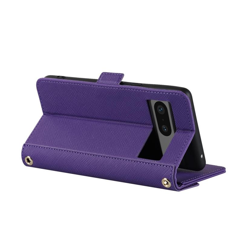 For Google Pixel 8 Cross Texture Crossbody Lanyard Leather Phone Case(Purple)