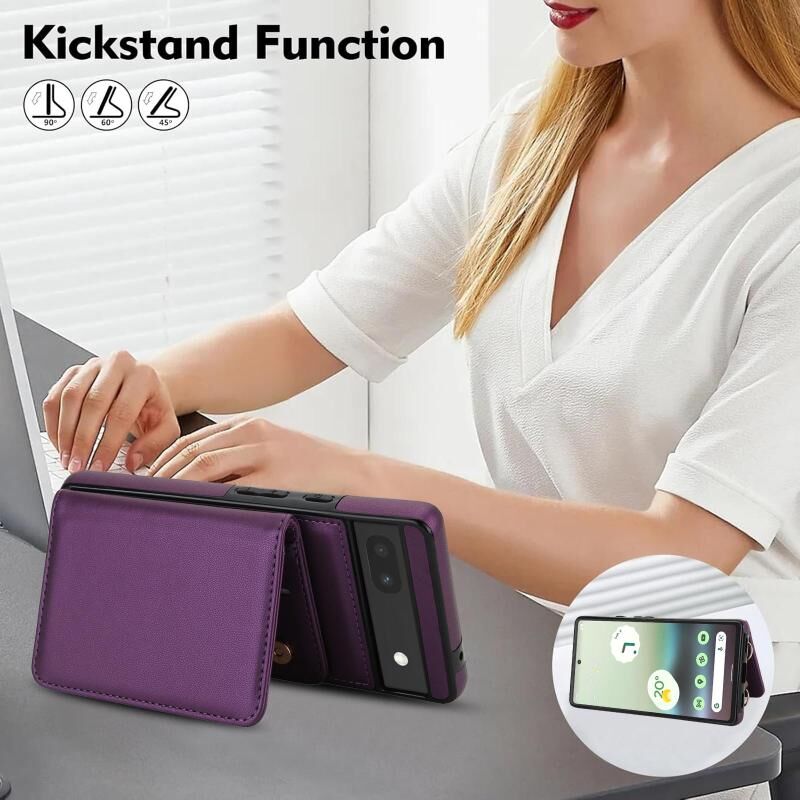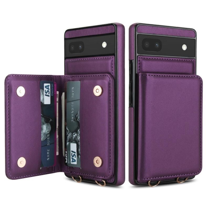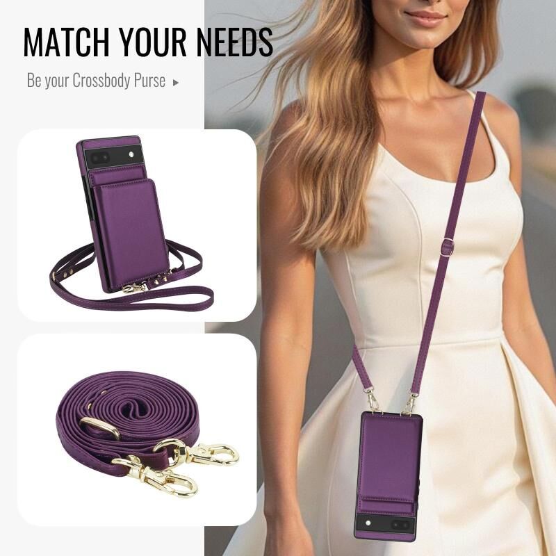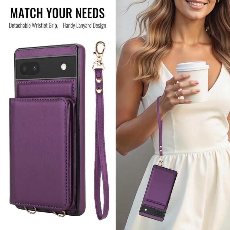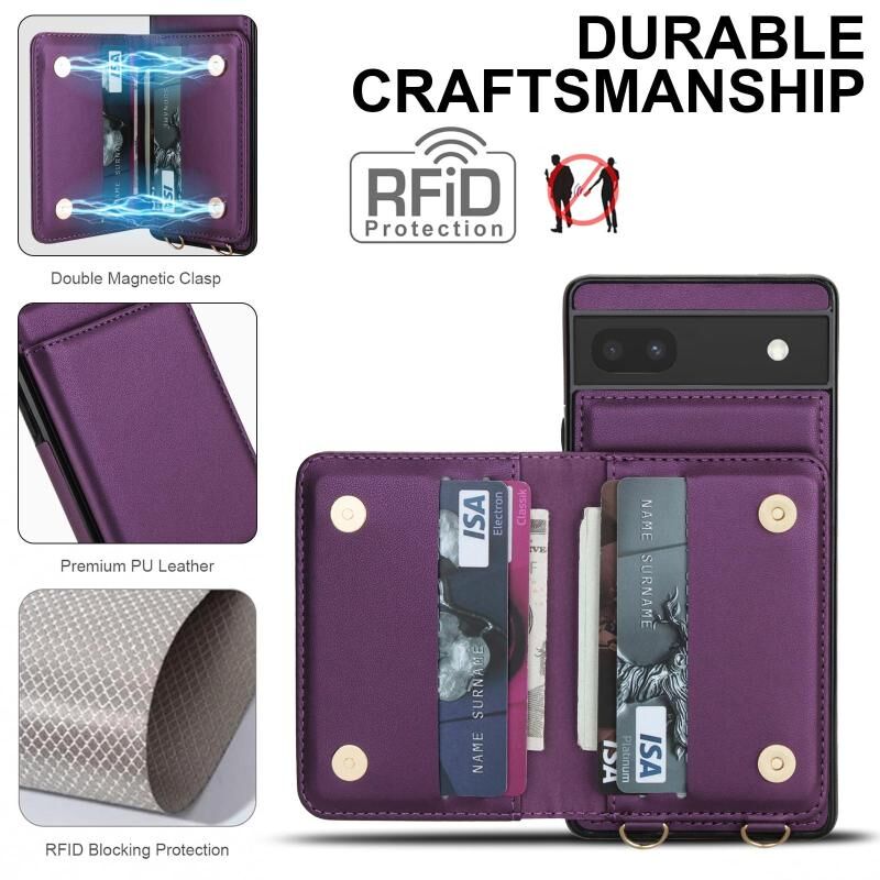 For Google Pixel 8 Crossbody Dual-buckle Wallet RFID Back Leather Phone Case(Dark Purple)