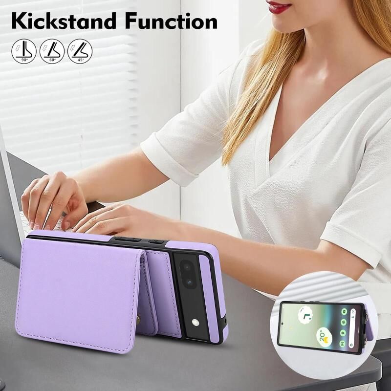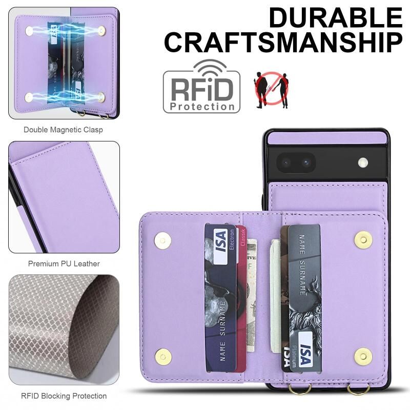 For Google Pixel 8 Crossbody Dual-buckle Wallet RFID Back Leather Phone Case(Light Purple)