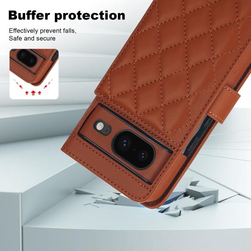 Για το Google Pixel 8 Crossbody Πολυλειτουργική θήκη τηλεφώνου από ρομβοειδές δέρμα (καφέ)
