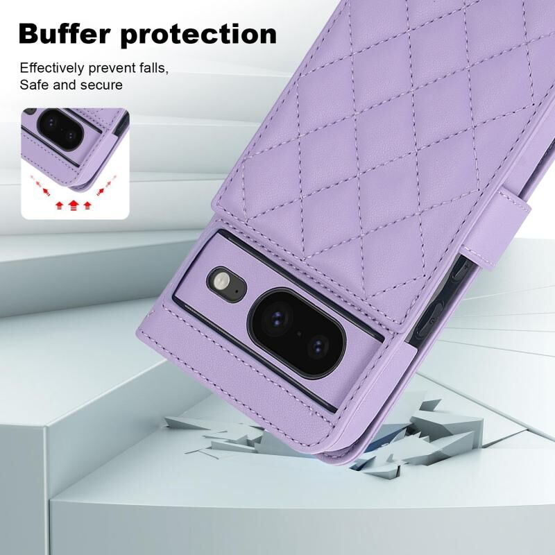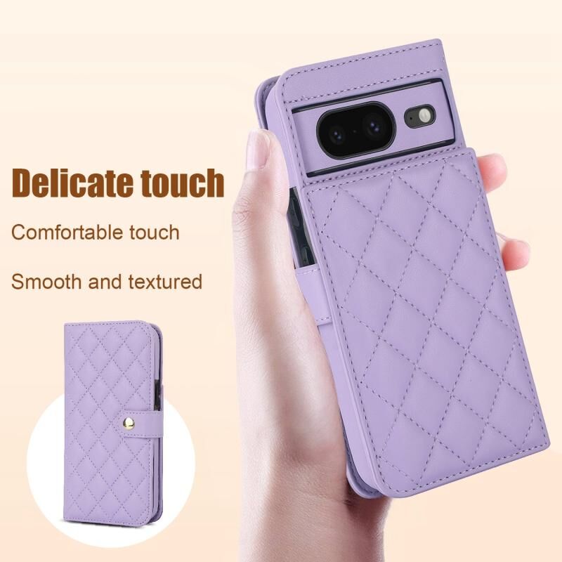 Για το Google Pixel 8 Crossbody Πολυλειτουργική θήκη τηλεφώνου από ρομβοειδές δέρμα (μωβ)