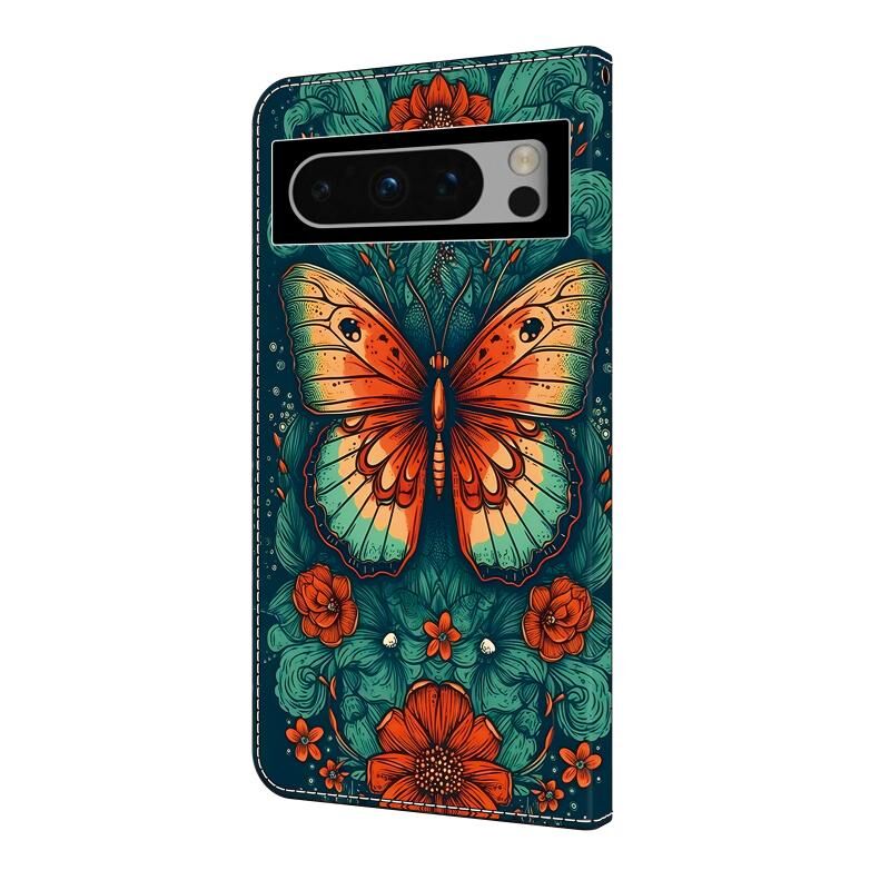 Θήκη τηλεφώνου Google Pixel 8 από δέρμα Crystal Painted (Λουλούδι Πεταλούδα)