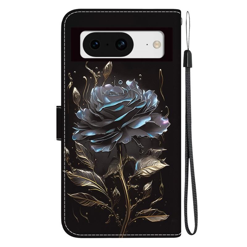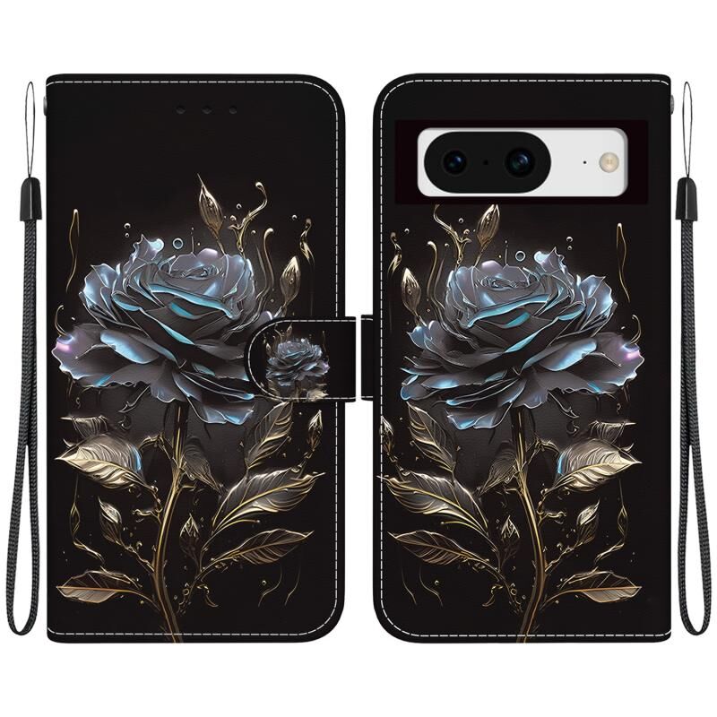 For Google Pixel 8 Crystal Texture Colored Drawing Leather Phone Case(Black Rose)