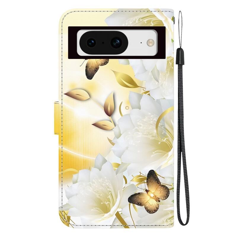For Google Pixel 8 Crystal Texture Colored Drawing Leather Phone Case(Gold Butterfly Epiphyllum)