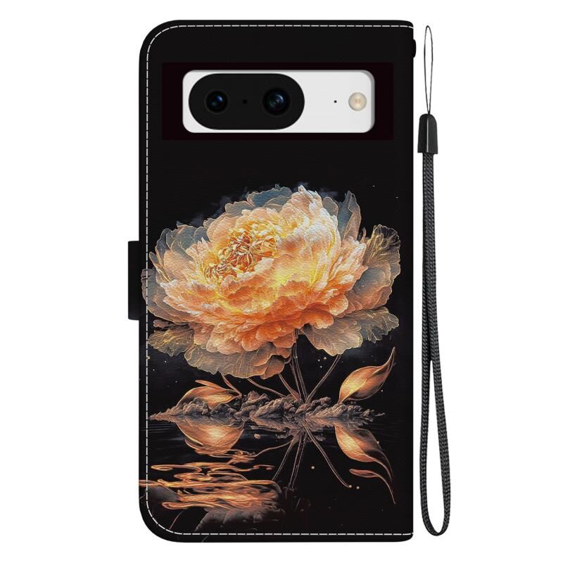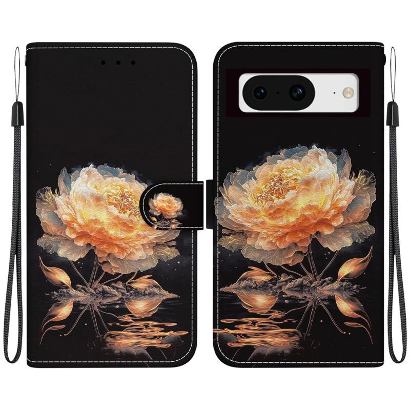 For Google Pixel 8 Crystal Texture Colored Drawing Leather Phone Case(Gold Peony)