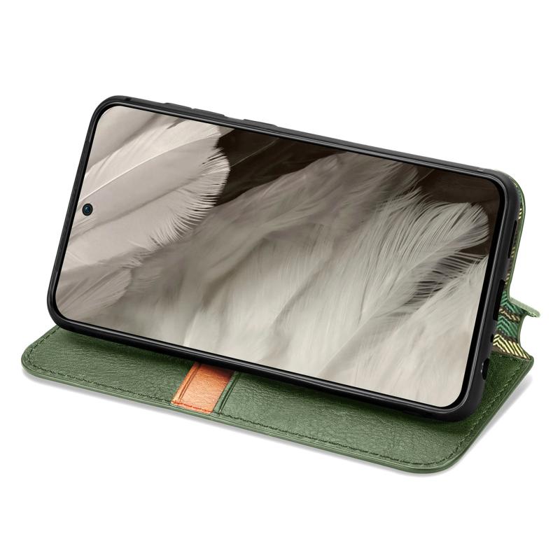 For Google Pixel 8 Cubic Grid Pressed Magnetic Leather Phone Case(Green)