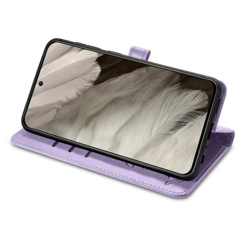 Θήκη τηλεφώνου από δέρμα με ανάγλυφα σχέδια χαριτωμένων γάτας και σκύλου για Google Pixel 8 (Μπλε)