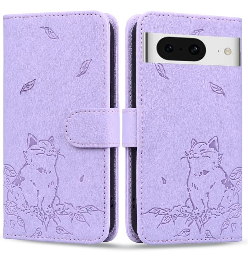 Θήκη τηλεφώνου από δέρμα με ανάγλυφο γατάκι για Google Pixel 8 (Πράσινο)