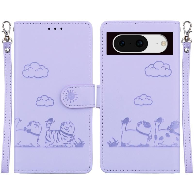 Θήκη τηλεφώνου από δέρμα με χαριτωμένες γάτες για Google Pixel 8 (Χρυσό ροζ) με προστασία RFID