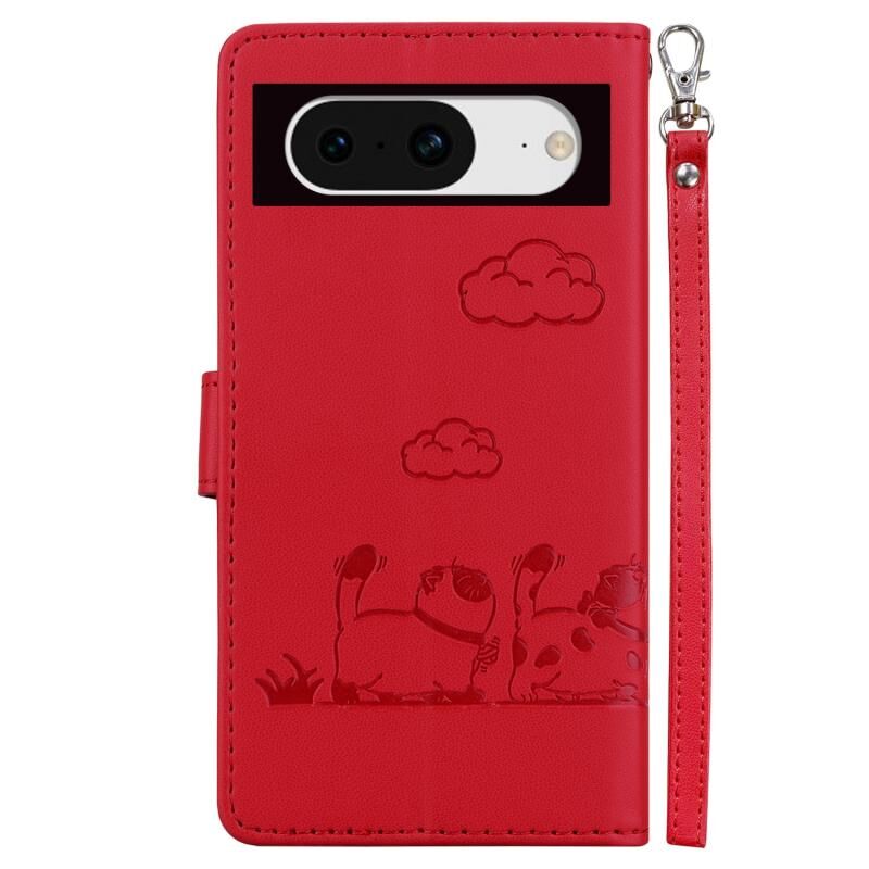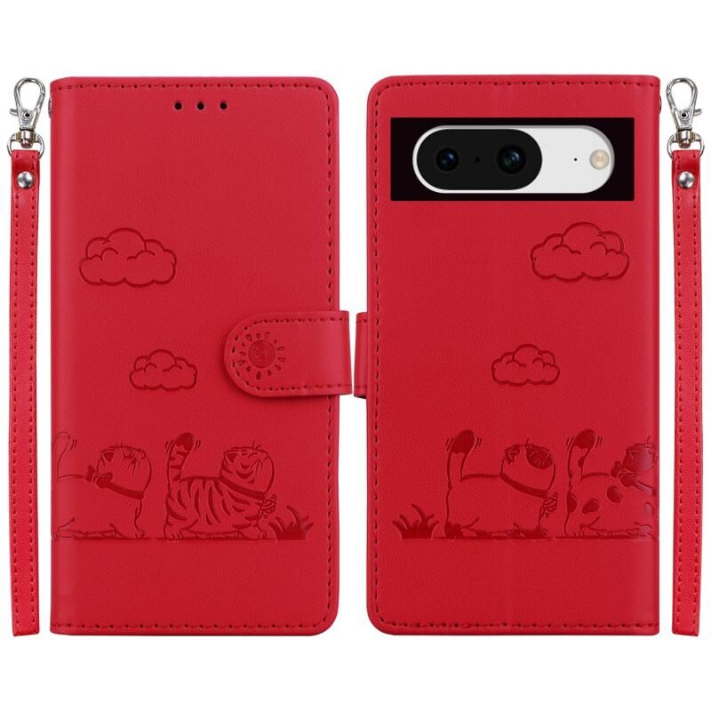 Θήκη τηλεφώνου από δέρμα με χαριτωμένες γάτες για Google Pixel 8 (Χρυσό ροζ) με προστασία RFID