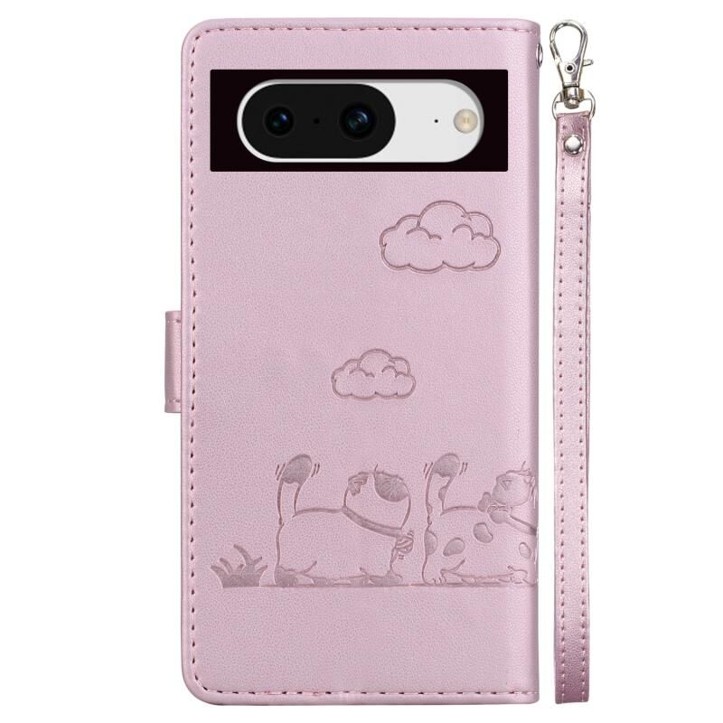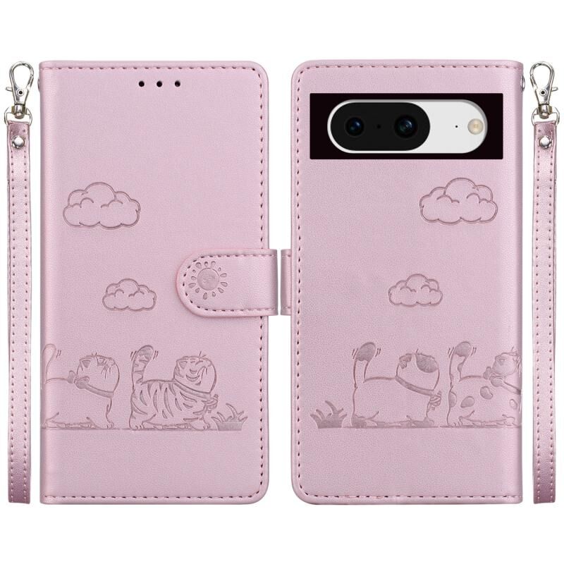 For Google Pixel 8 Cute Cats RFID Leather Phone Case(Rose Gold)