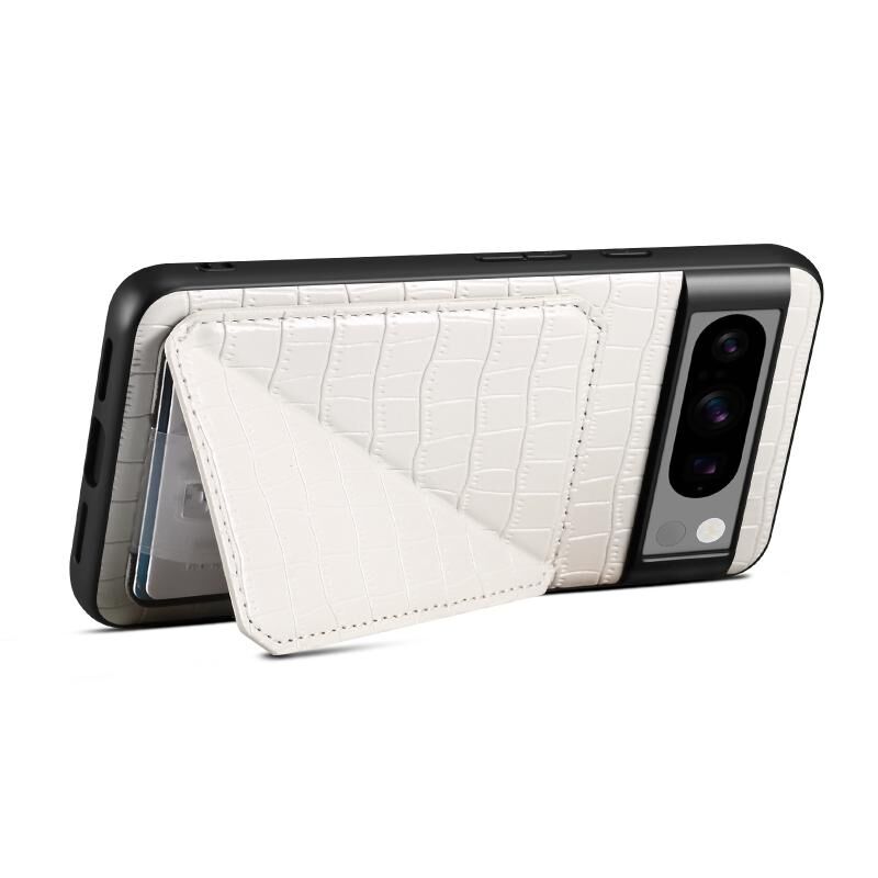 For Google Pixel 8 Denior Crocodile Texture Holder Electroplating Phone Case(White) (Denior)