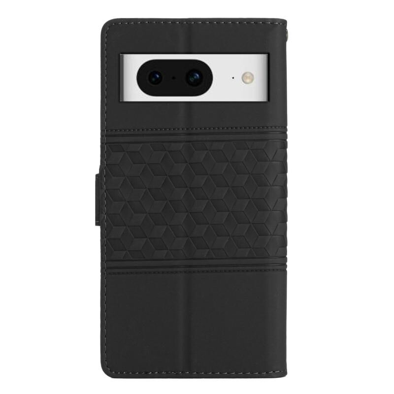Για το Google Pixel 8 Diamond ανάγλυφο δέρμα αίσθηση δέρμα υπόθεση τηλεφώνου με κορδόνι (μαύρο)