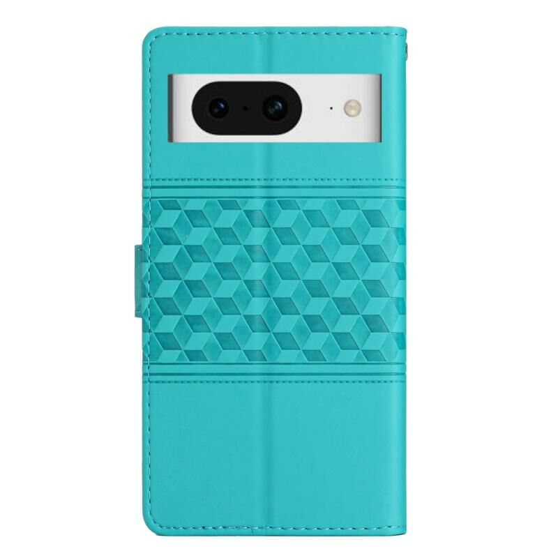 Για το Google Pixel 8 Diamond ανάγλυφο δέρμα αίσθηση δέρμα υπόθεση τηλεφώνου με κορδόνι (μπλε)