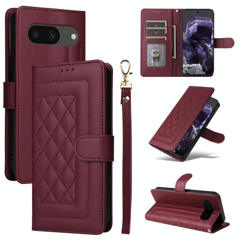 For Google Pixel 8 Diamond Lattice Leather Flip Phone Case(Wine Red)