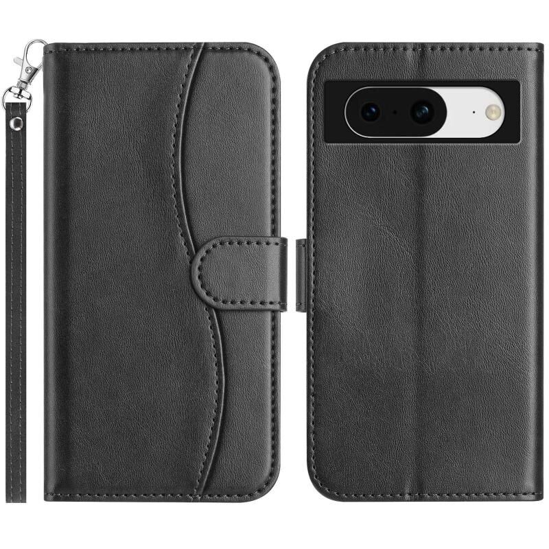 For Google Pixel 8 Dual-Folded S-shape Leather Phone Case(Black)