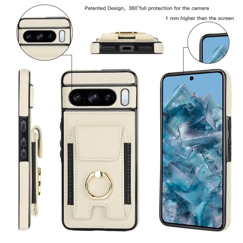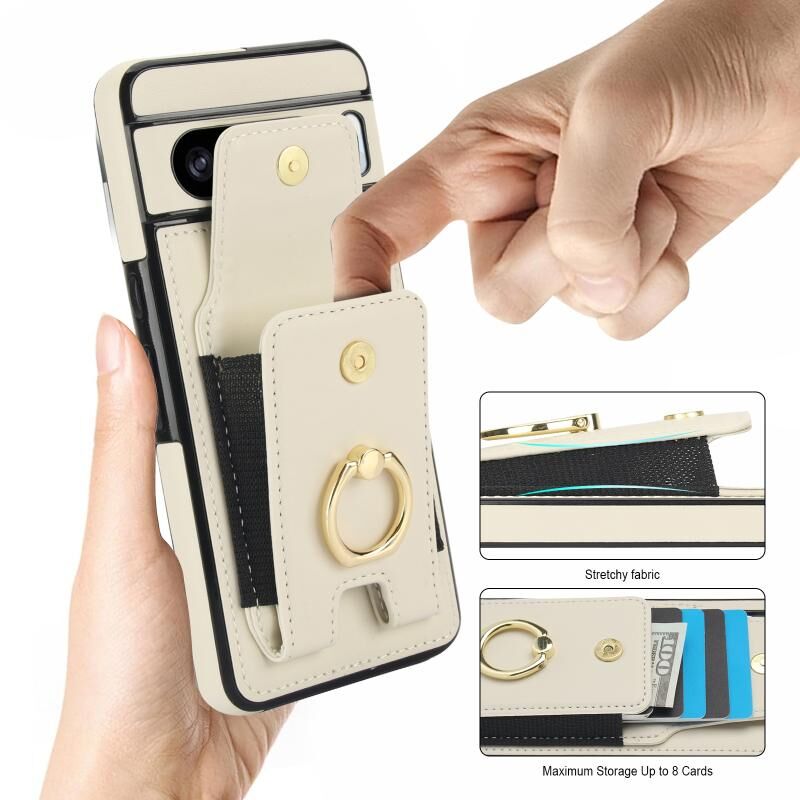 Για το Google Pixel 8 Ελαστική τσάντα καρτών δαχτυλίδι κάτοχος υπόθεση τηλεφώνου (λευκό)
