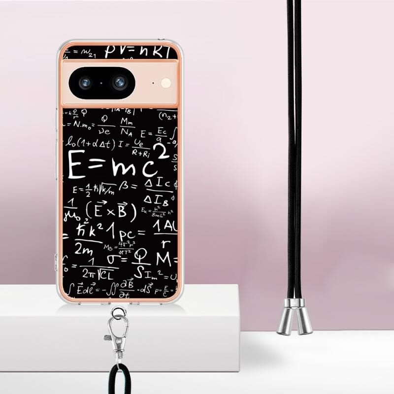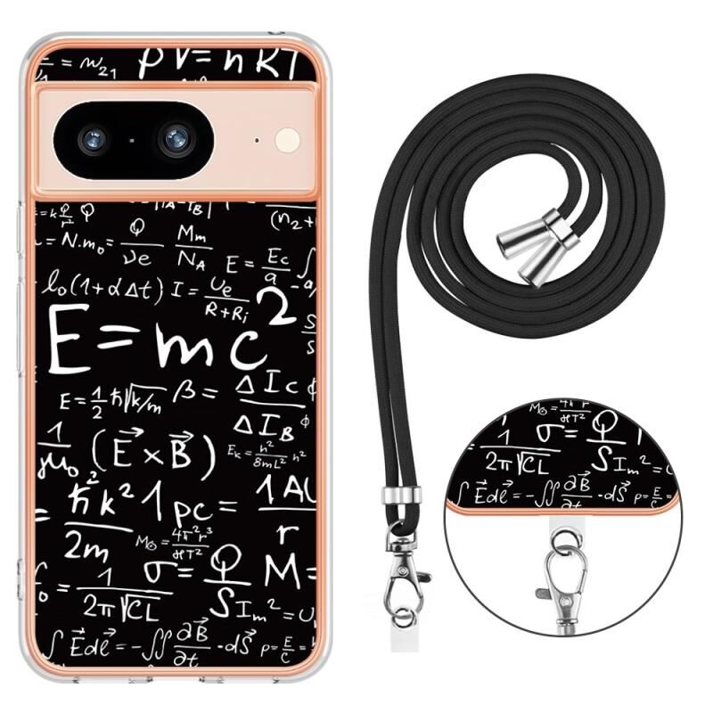 For Google Pixel 8 Electroplating Dual-side IMD Phone Case with Lanyard(Equation)