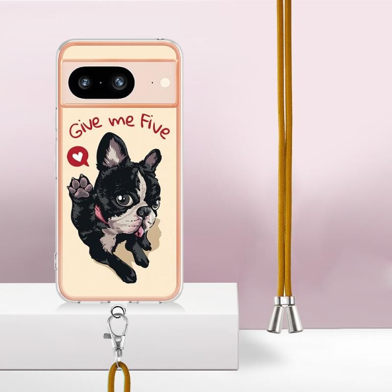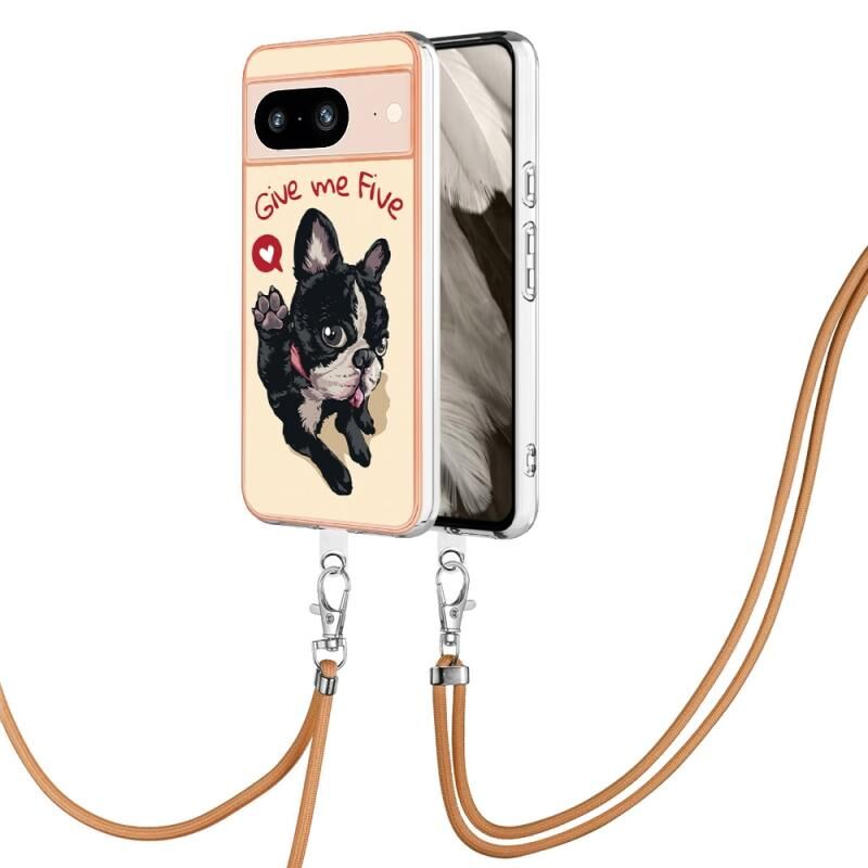 For Google Pixel 8 Electroplating Dual-side IMD Phone Case with Lanyard(Lucky Dog)