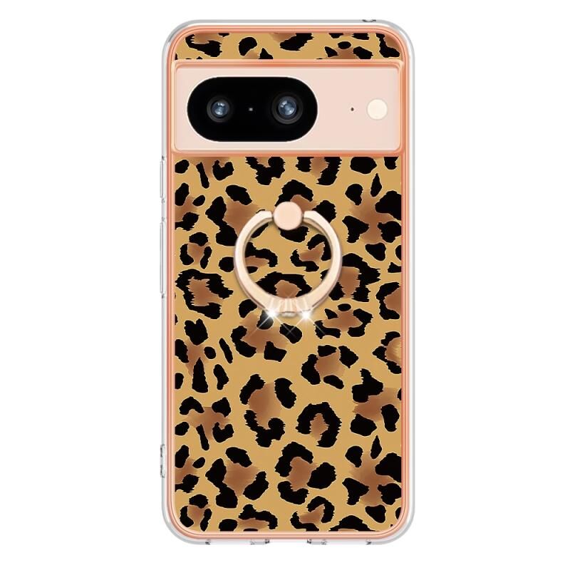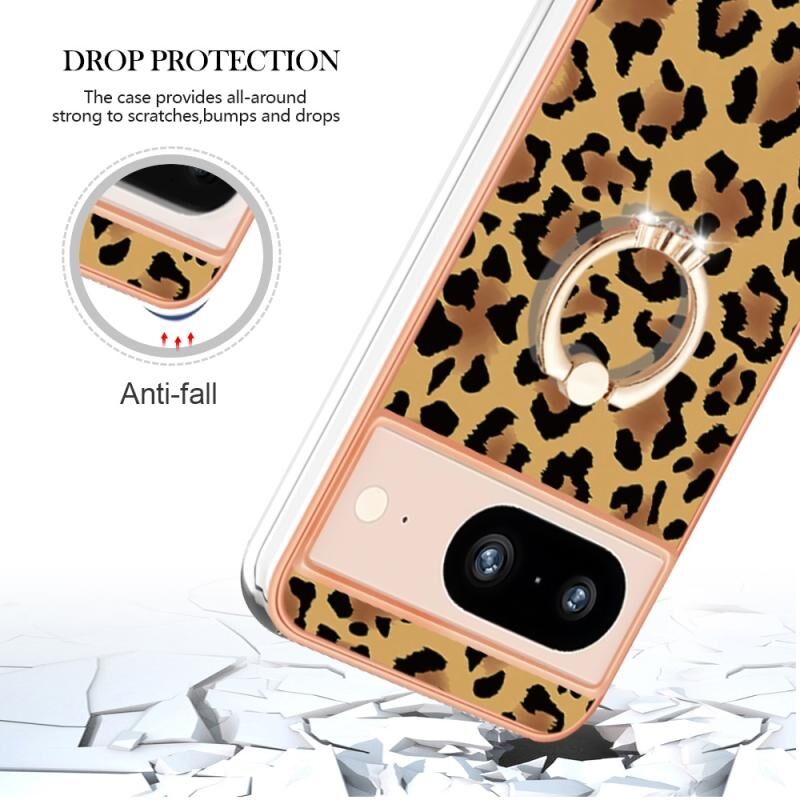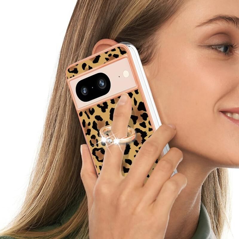 Θήκη τηλεφώνου για Google Pixel 8 με ηλεκτρολυτική επιμετάλλωση, διπλής όψης IMD με δακτύλιο στήριξης (εκτύπωση λεοπάρδαλης)