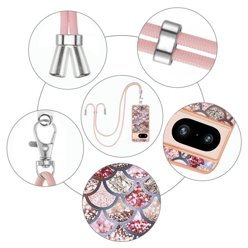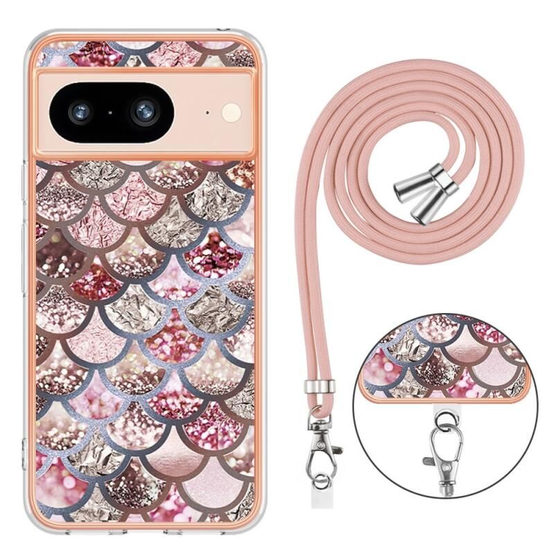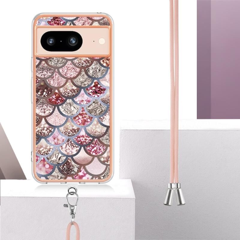 Θήκη τηλεφώνου Google Pixel 8 με ηλεκτρολυτική επιμετάλλωση IMD TPU με κορδόνι (Ροζ Λέπια)