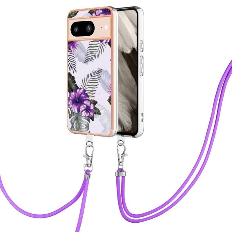 For Google Pixel 8 Electroplating IMD TPU Phone Case with Lanyard(Purple Flower)