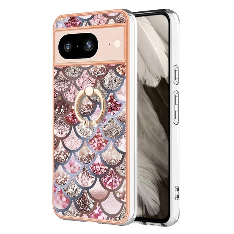 Θήκη τηλεφώνου Google Pixel 8 με ηλεκτρολυτική επιμετάλλωση IMD TPU με δακτύλιο (Ροζ Λέπια)