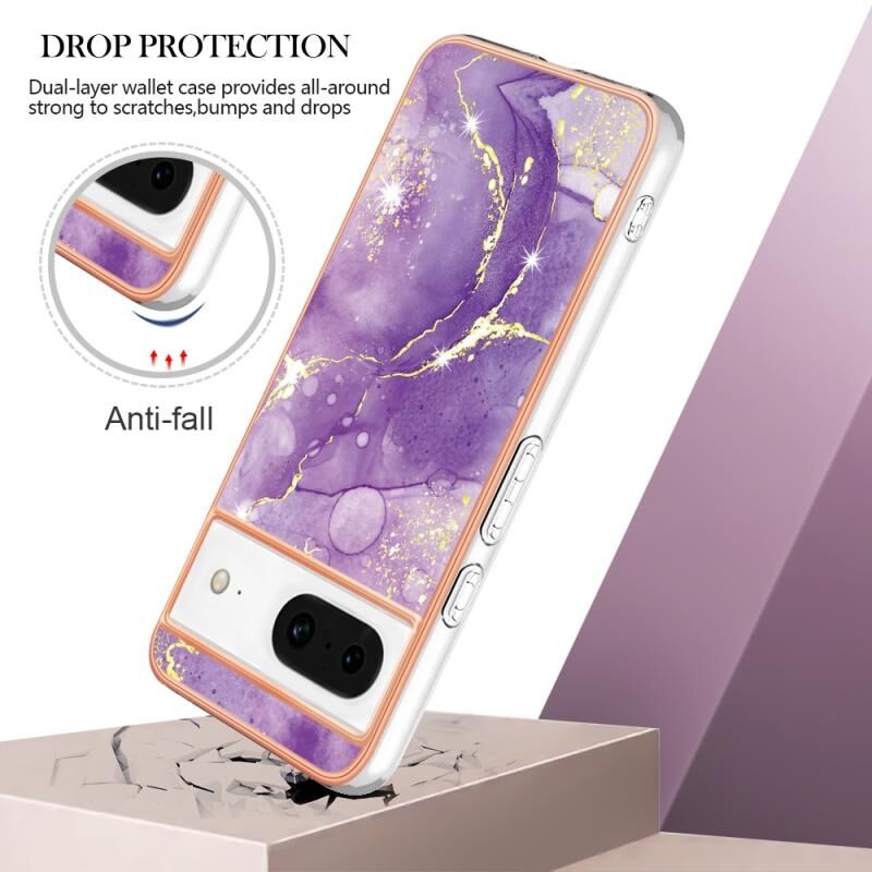 Θήκη τηλεφώνου Google Pixel 8 Επιμετάλλωση Μαρμάρου Διπλής Όψης IMD (Μωβ 001)