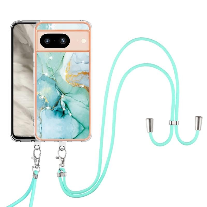 For Google Pixel 8 Electroplating Marble Dual-side IMD Phone Case with Lanyard(Green 003)