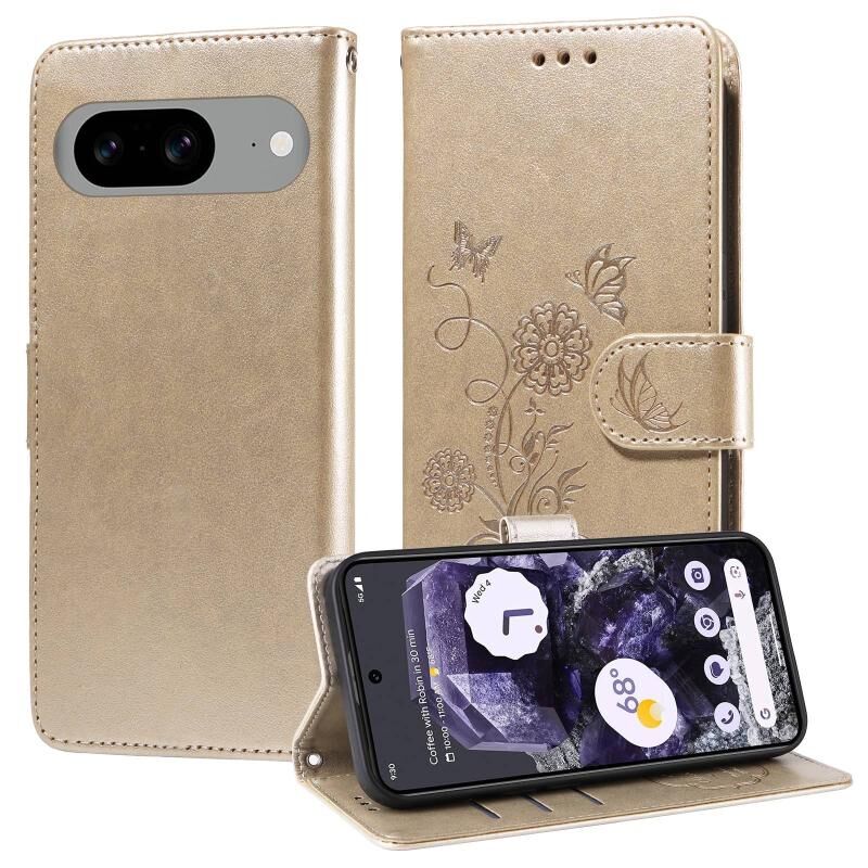 Θήκη τηλεφώνου από δέρμα με ανάγλυφα σχέδια πεταλούδας και λουλουδιών για Google Pixel 8 (Μωβ)