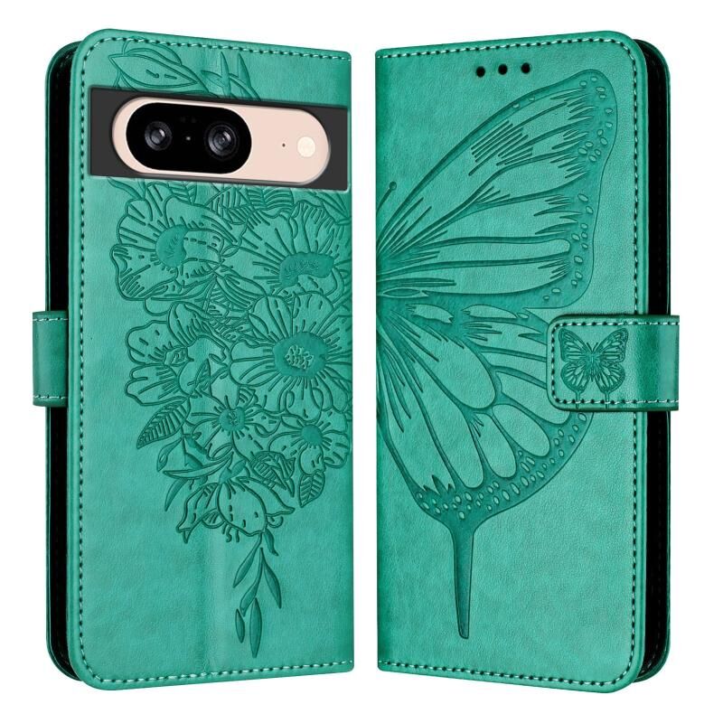 For Google Pixel 8 Embossed Butterfly Leather Phone Case(Green)