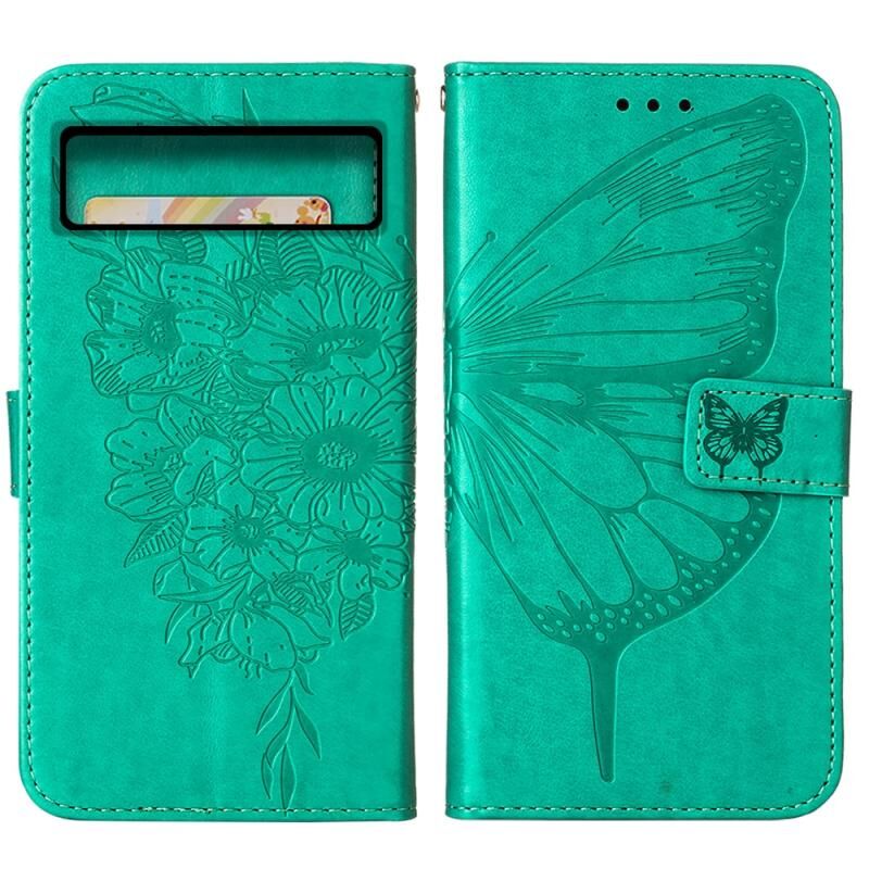 Θήκη τηλεφώνου από δέρμα με ανάγλυφο σχέδιο πεταλούδας για Google Pixel 8 (Σκούρο Μωβ)