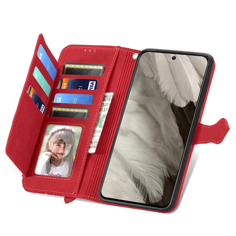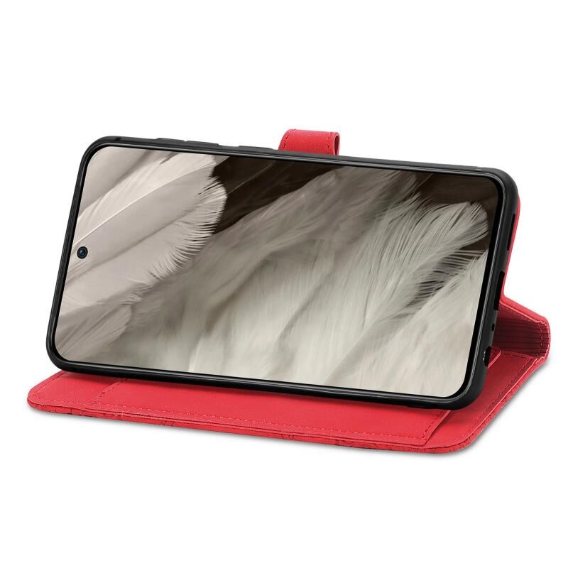 Για το Google Pixel 8 ανάγλυφο λουλούδι φερμουάρ δερμάτινη θήκη τηλεφώνου (κόκκινο)