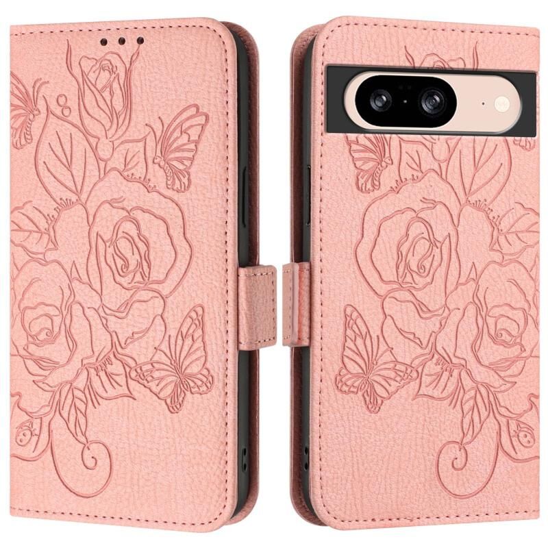 For Google Pixel 8 Embossed Rose RFID Anti-theft Leather Phone Case(Pink)