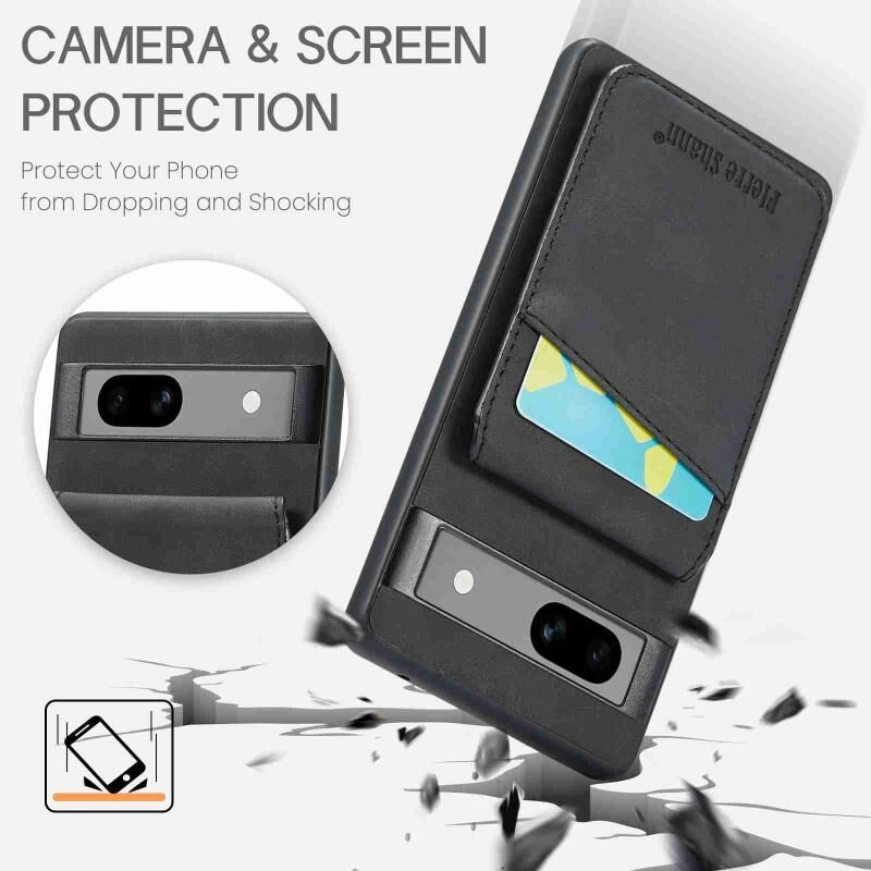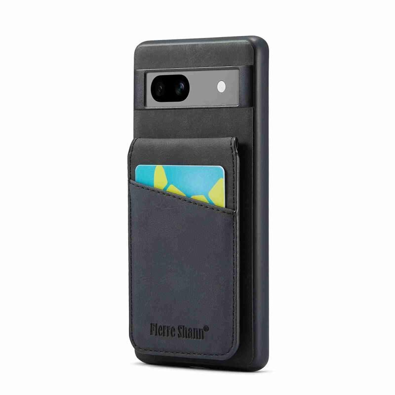 Για το Google Pixel 8 Fierre Shann Crazy Horse Card Holder πίσω κάλυμμα PU υπόθεση τηλεφώνου (μαύρο) (FIERRE SHANN)