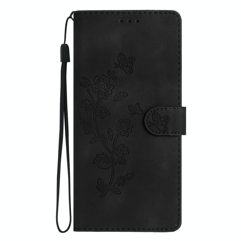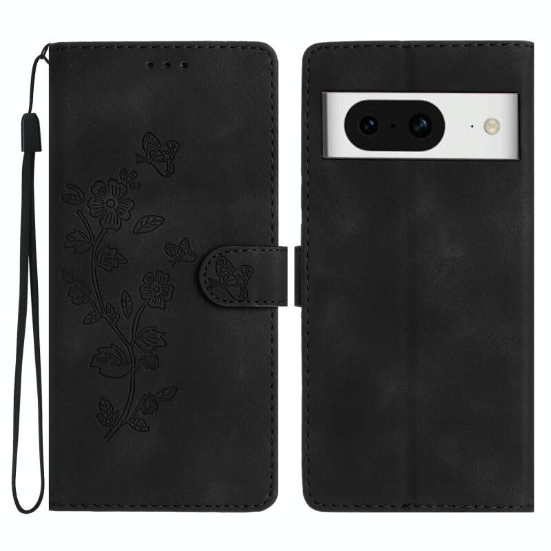 Για το Google Pixel 8 λουλούδι πεταλούδα ανάγλυφο μοτίβο δερμάτινη θήκη τηλεφώνου (μαύρο)