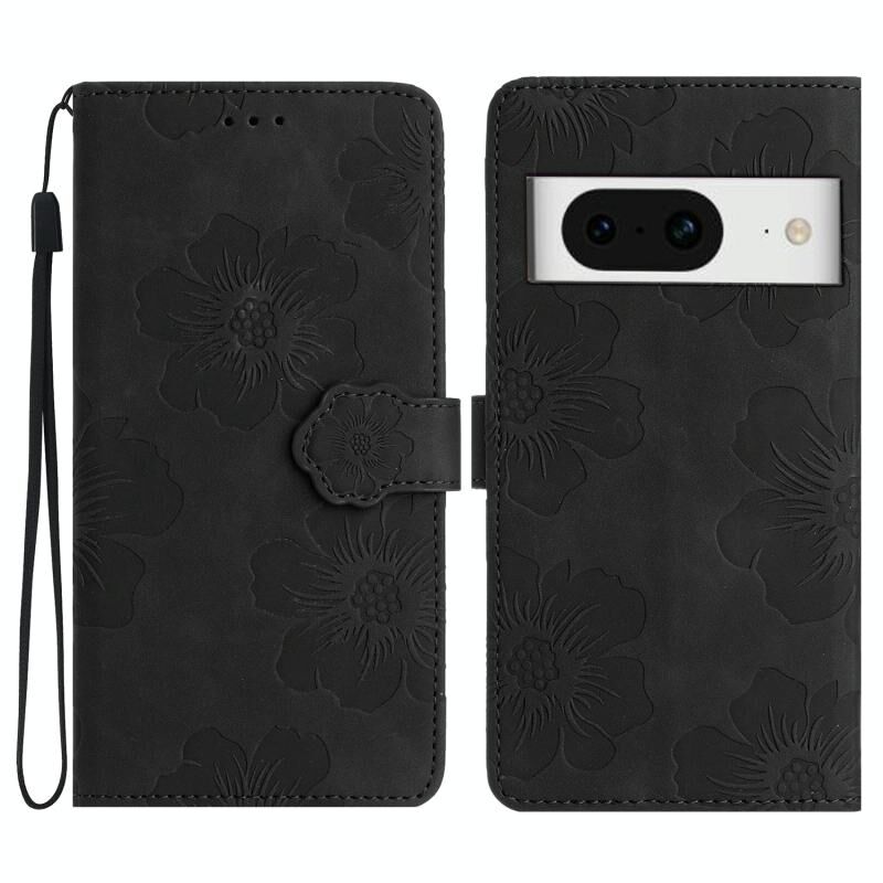 Για το Google Pixel 8 λουλούδι ανάγλυφο μοτίβο δερμάτινη θήκη τηλεφώνου (μαύρο)