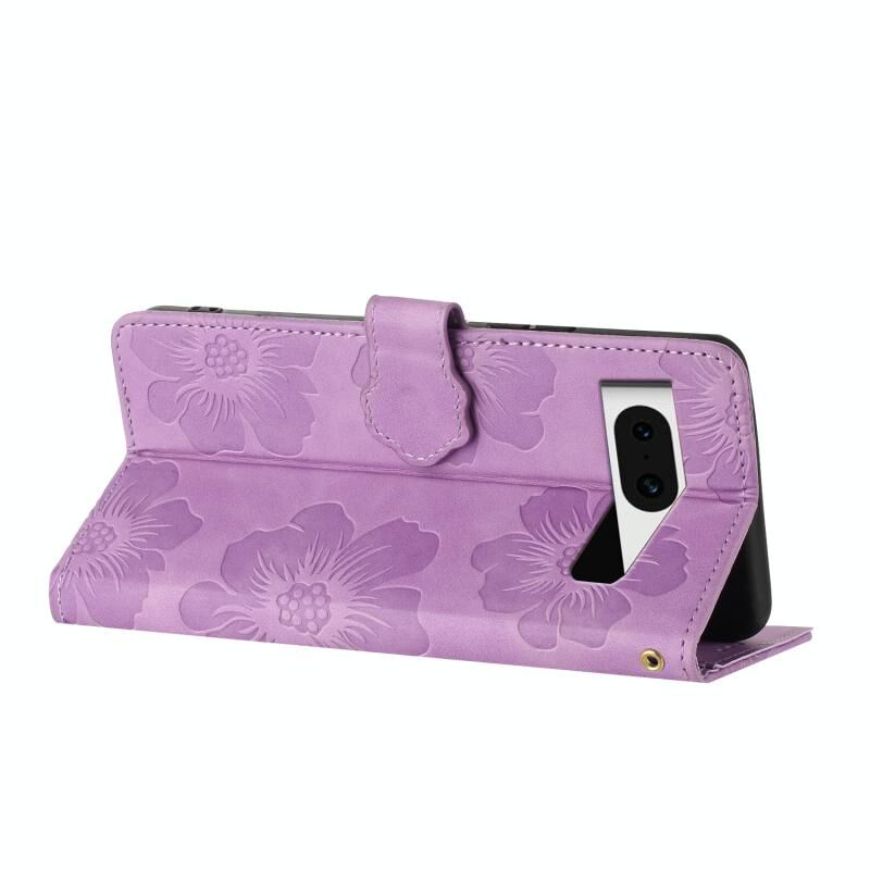 Για το Google Pixel 8 λουλούδι ανάγλυφο μοτίβο δερμάτινη θήκη τηλεφώνου (μωβ)