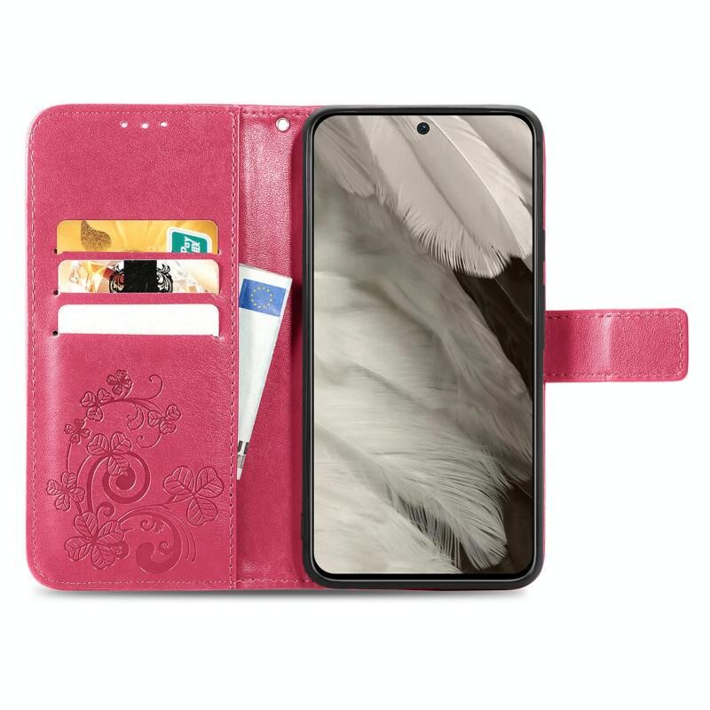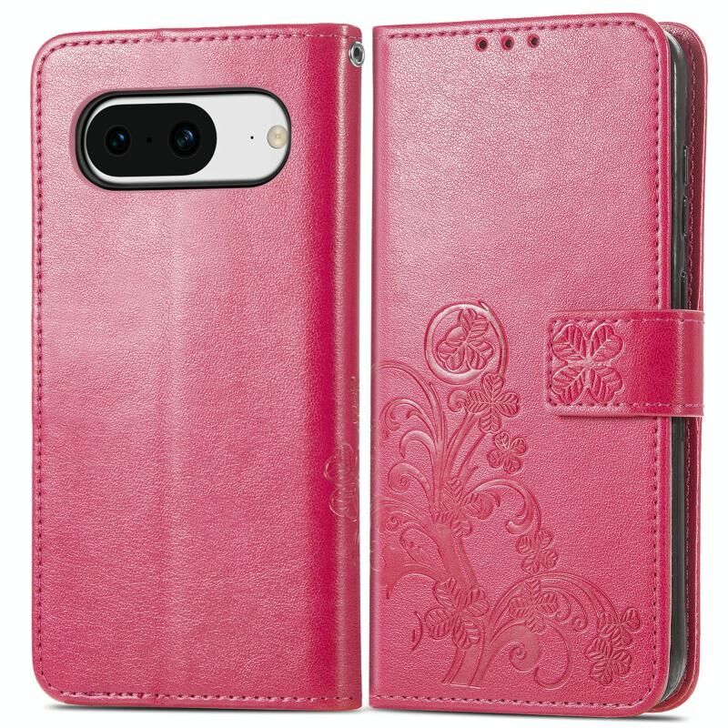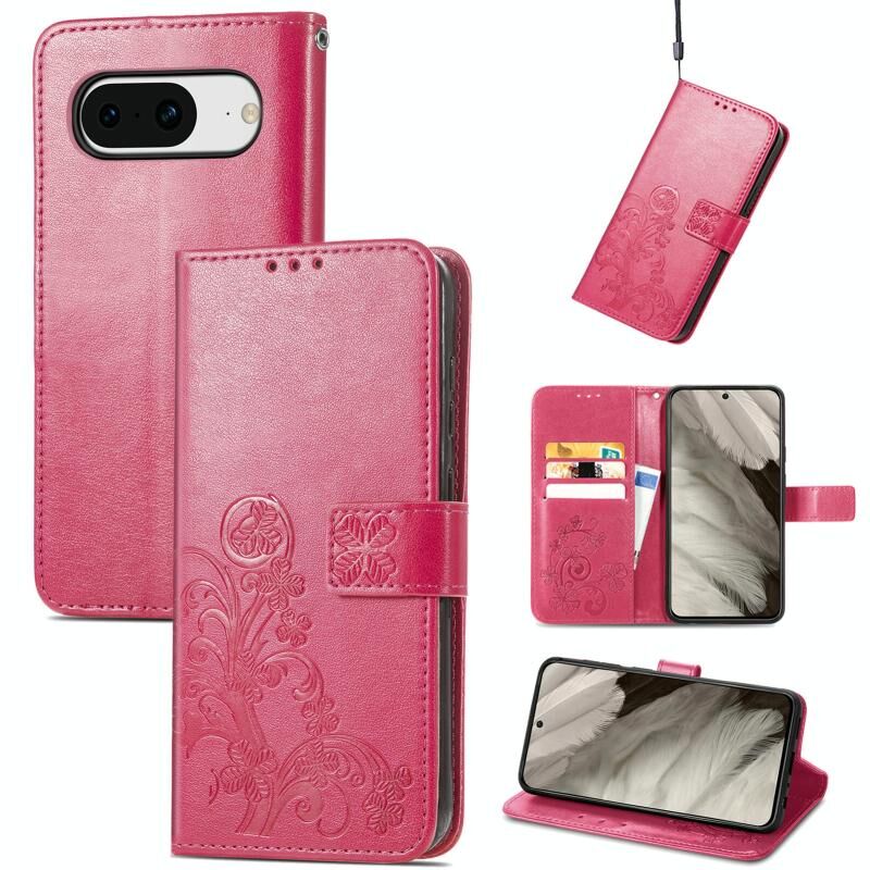 Θήκη τηλεφώνου από δέρμα με ανάγλυφο σχέδιο και κούμπωμα τριφυλλιού για Google Pixel 8 (Χρυσό Ρόδι)