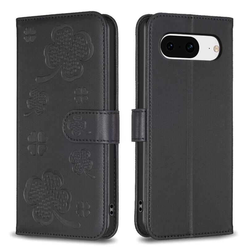 Για το Google Pixel 8 Four-leaf Embossed δερμάτινη θήκη τηλεφώνου (Μαύρο)