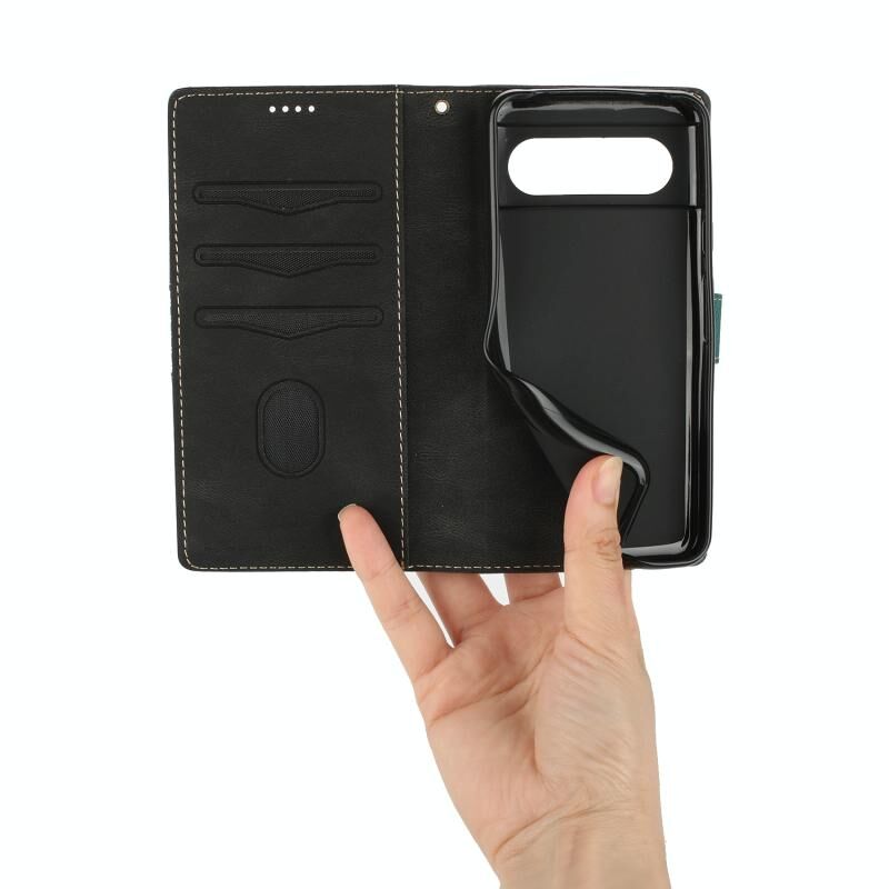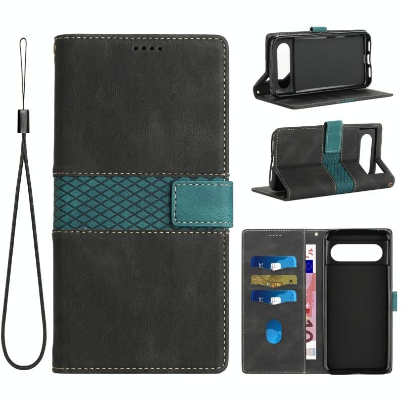 Για το Google Pixel 8 Δερμάτινη θήκη τηλεφώνου με ραφή πλέγματος και κορδόνι (μαύρο)