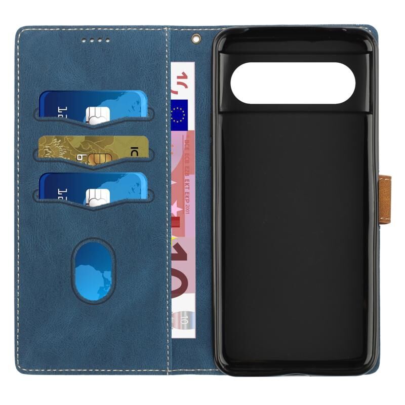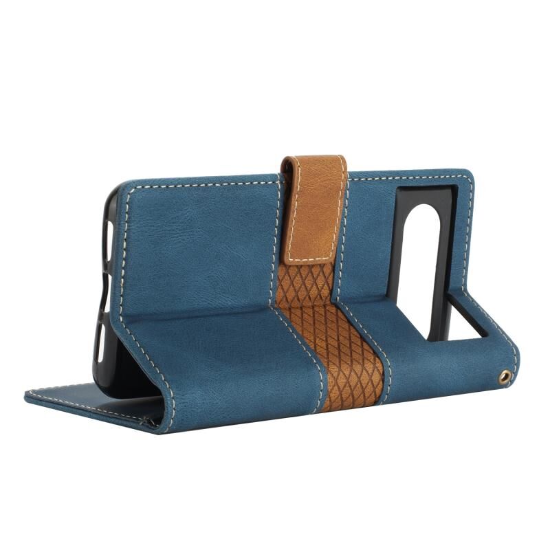 Για το Google Pixel 8 Δερμάτινη θήκη τηλεφώνου με ραφή πλέγματος και κορδόνι (μπλε)