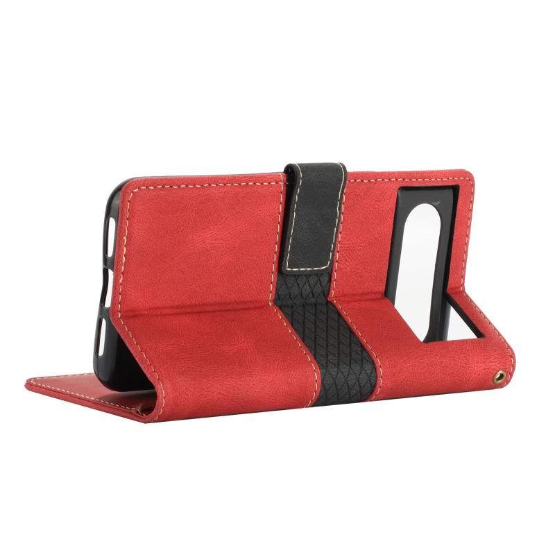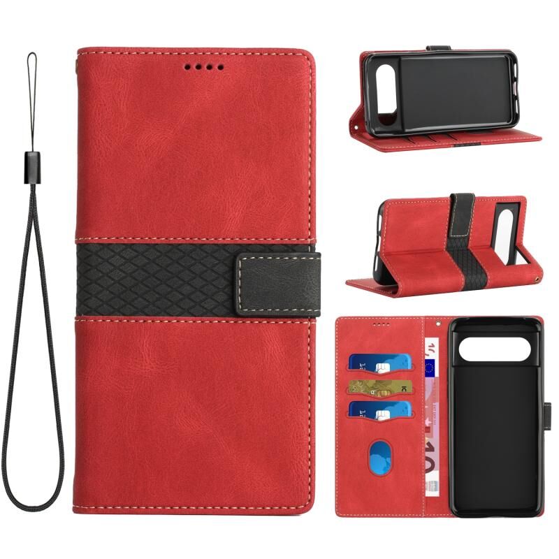 Για το Google Pixel 8 Δερμάτινη θήκη τηλεφώνου με ραφή πλέγματος και κορδόνι (κόκκινο)