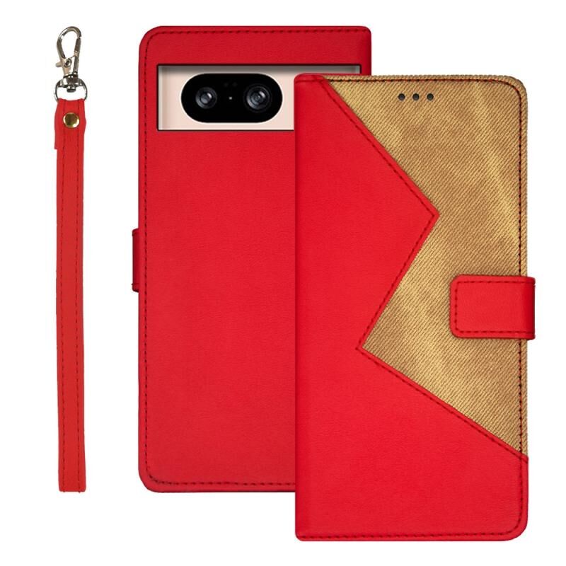 For Google Pixel 8 idewei Two-color Splicing Leather Phone Case(Red) (idewei)