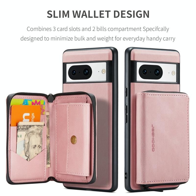 Για Google Pixel 8 JEEHOOD Μαγνητικό φερμουάρ πορτοφόλι τηλέφωνο δερμάτινη θήκη (ροζ) (JEEHOOD)