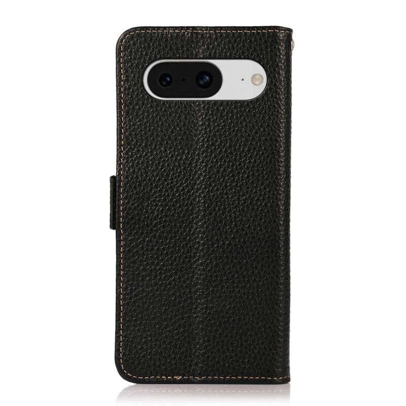 Θήκη τηλεφώνου Google Pixel 8 KHAZNEH με μαγνητικό κλείσιμο, από γνήσιο δέρμα Litchi και προστασία RFID (Μαύρο)
